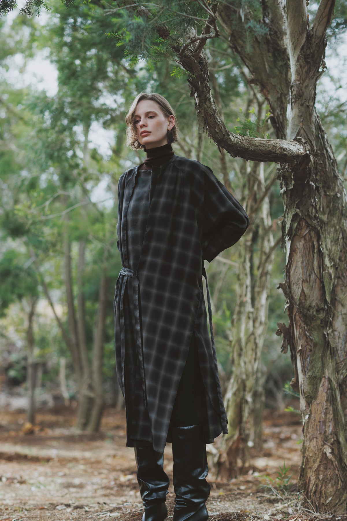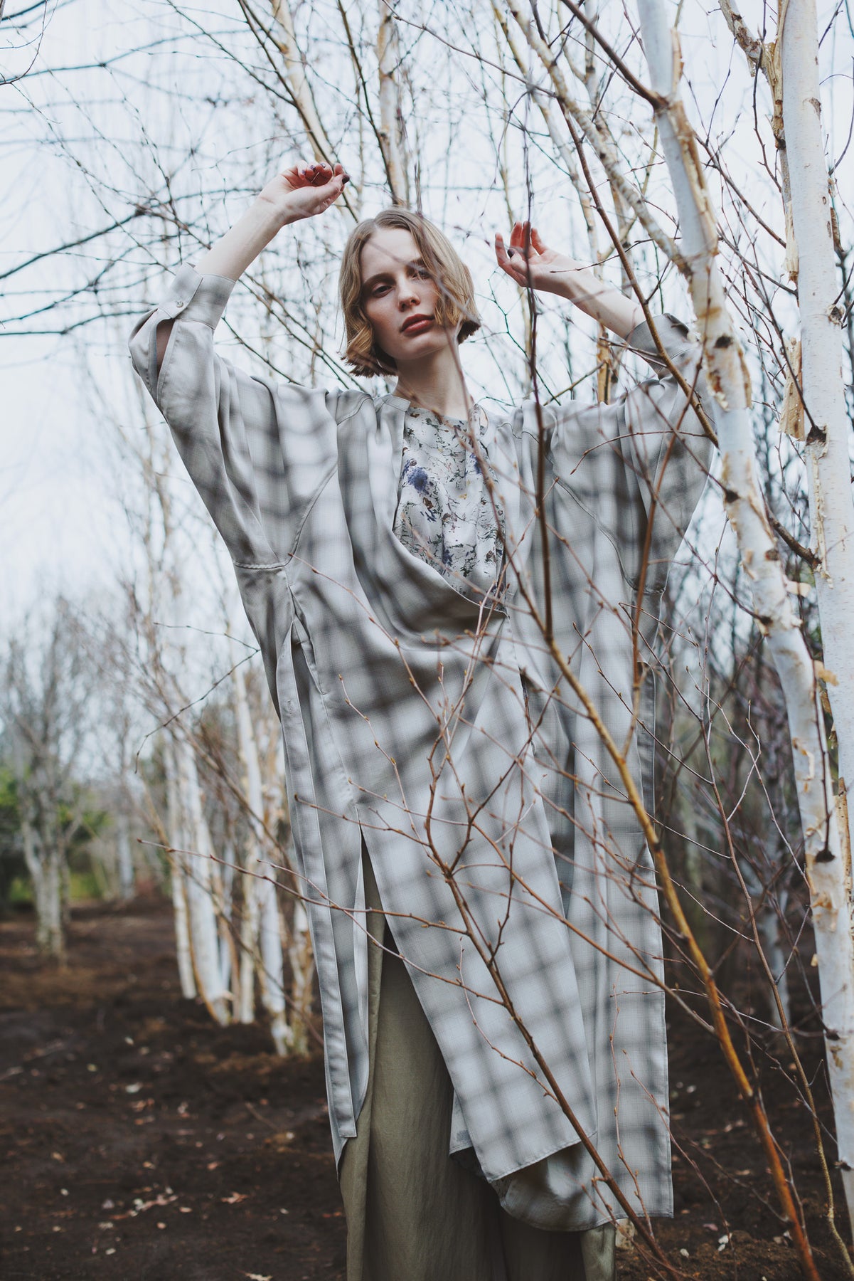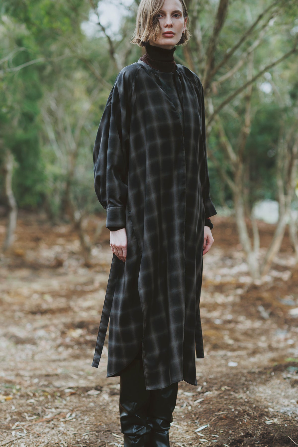 奥行きのある色合いで構成されたオンブレーチェックが特徴です。